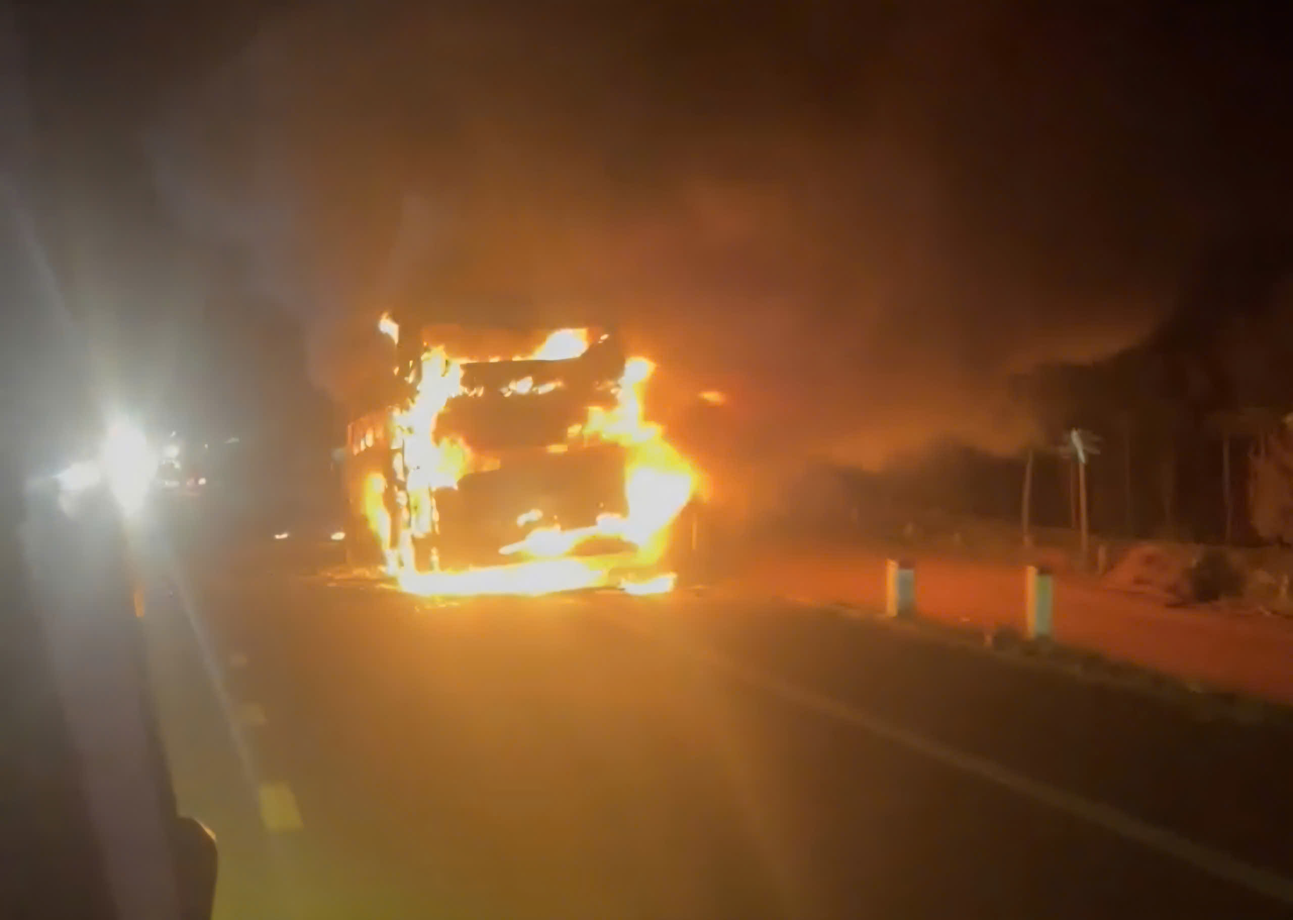 Xe khách giường nằm ch:áy ngùn ngụt trong đêm
